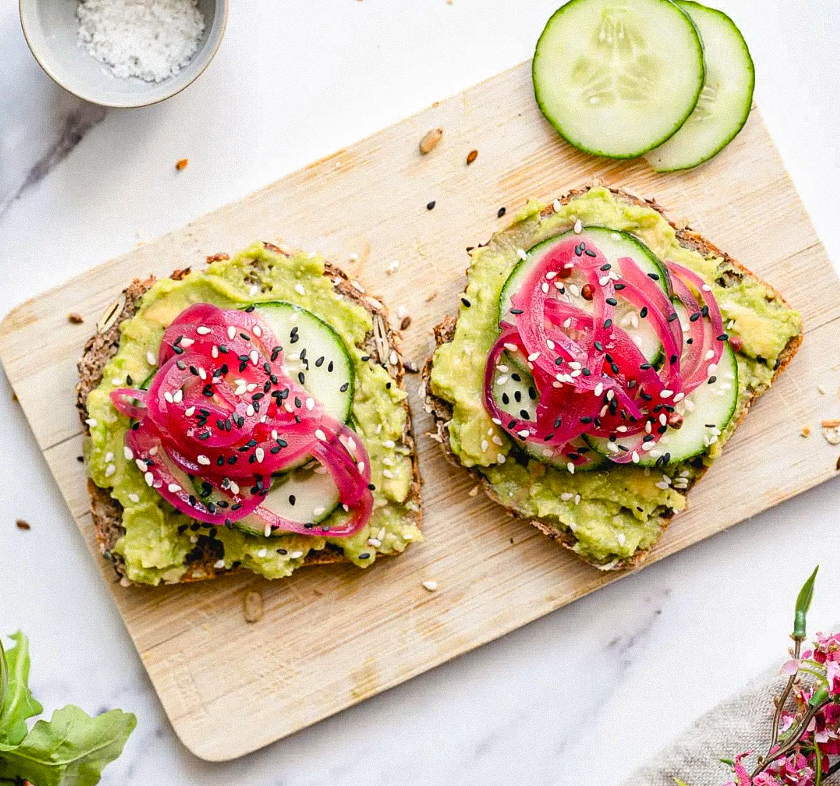 Toast with Avocado and Red Onion Pickles