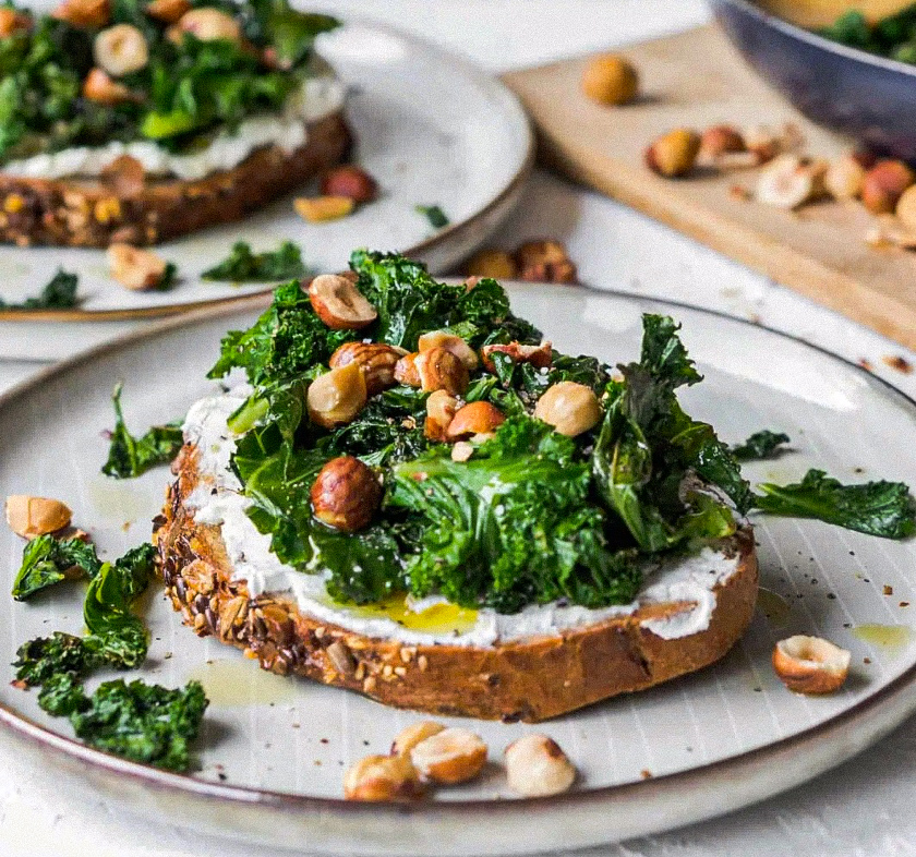 Kale, Goat Cheese and Hazelnut Toast